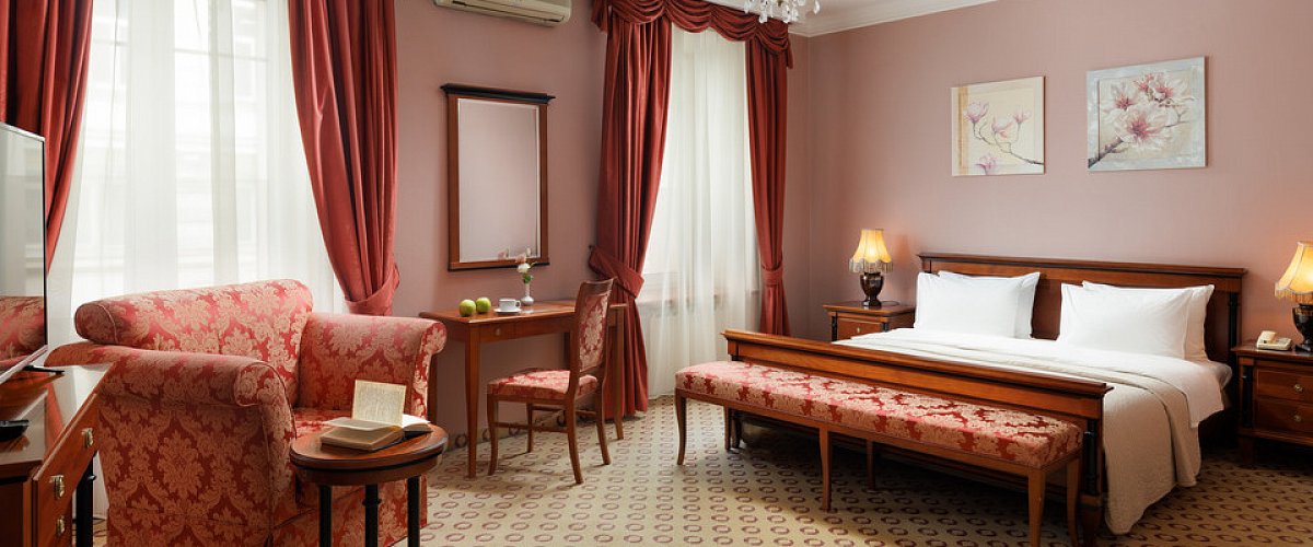 El Hotel Budapest es un elegante establecimiento de cuatro estrellas ubicado en un edificio histórico del siglo XIX, diseñado por el arquitecto Freidenberg en 1876. Combina el encanto de antaño con la comodidad moderna, preservando la elegancia de la Moscú pre-revolucionaria y ofreciendo al mismo tiempo servicios contemporáneos.Cada habitación está decorada individualmente en estilo clásico y equipada con comodidades modernas: aire acondicionado, Wi-Fi gratuito, minibar, caja fuerte, set de té y televisión por satélite. Los huéspedes pueden comenzar el día con un completo desayuno buffet que incluye platos fríos y calientes, y luego relajarse en el acogedor bar con una selección de bebidas y aperitivos.